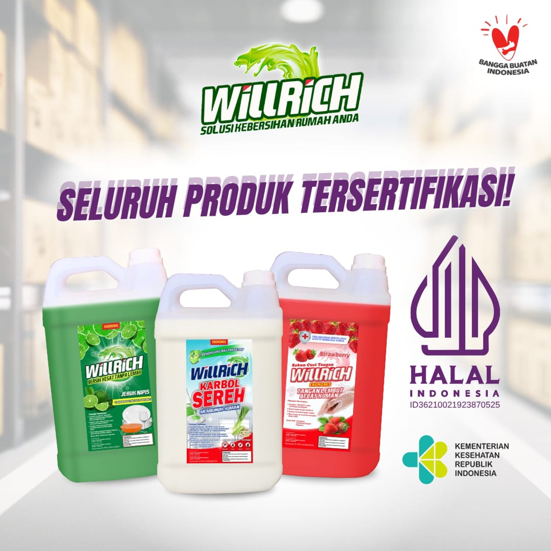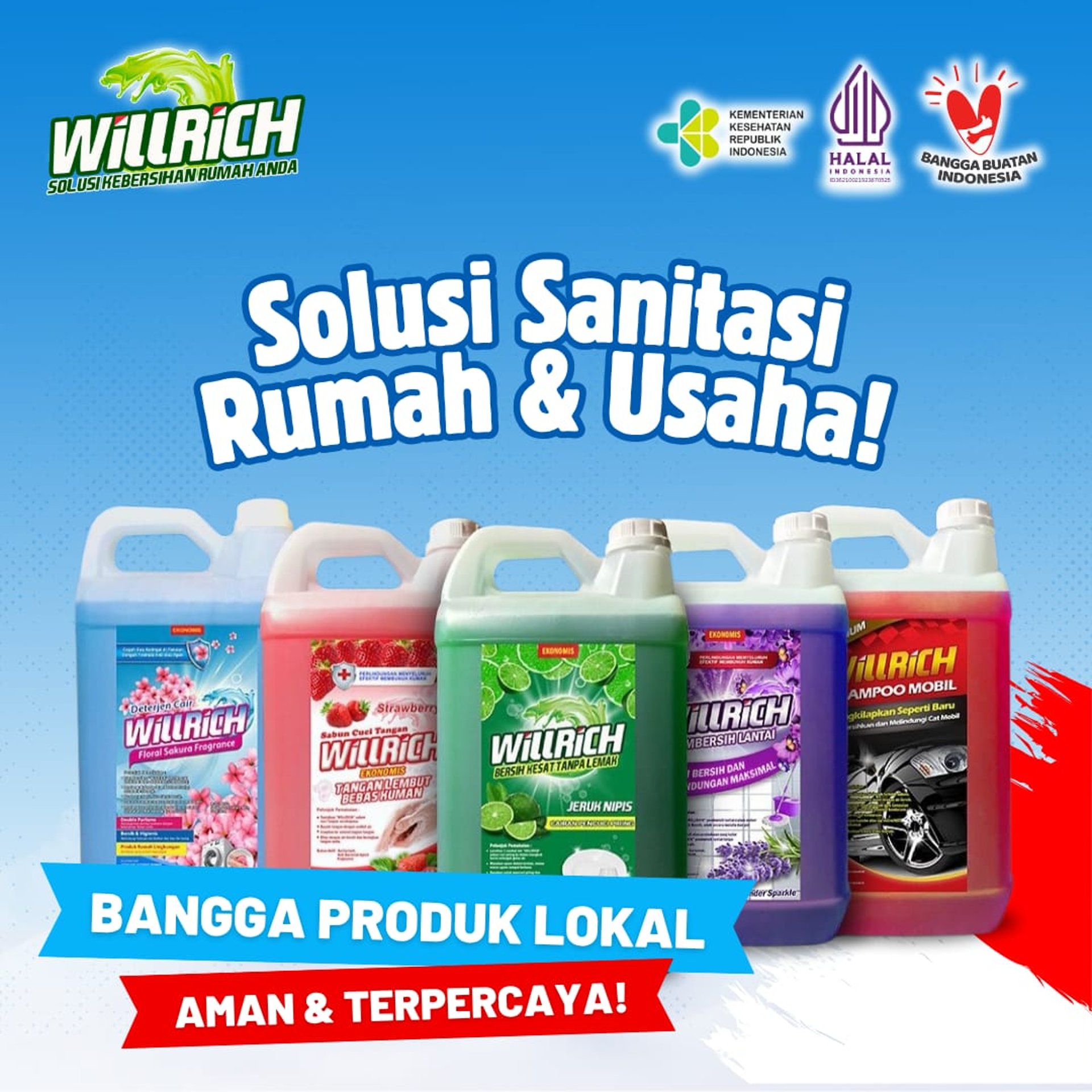 Memproduksi berbagai macam jenis produk pembersih seperti: Pembersih rumah tangga, kantor, gedung, hotel, restoran, rumah sakit, laundry, mobil dan motor.