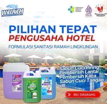 Dengan standar tersebut, produk Willrich memastikan kebersihan area hotel—dari kamar, housekeeping, dapur, restoran, hingga fasilitas umum—tetap aman, higienis, dan konsisten berkualitas.