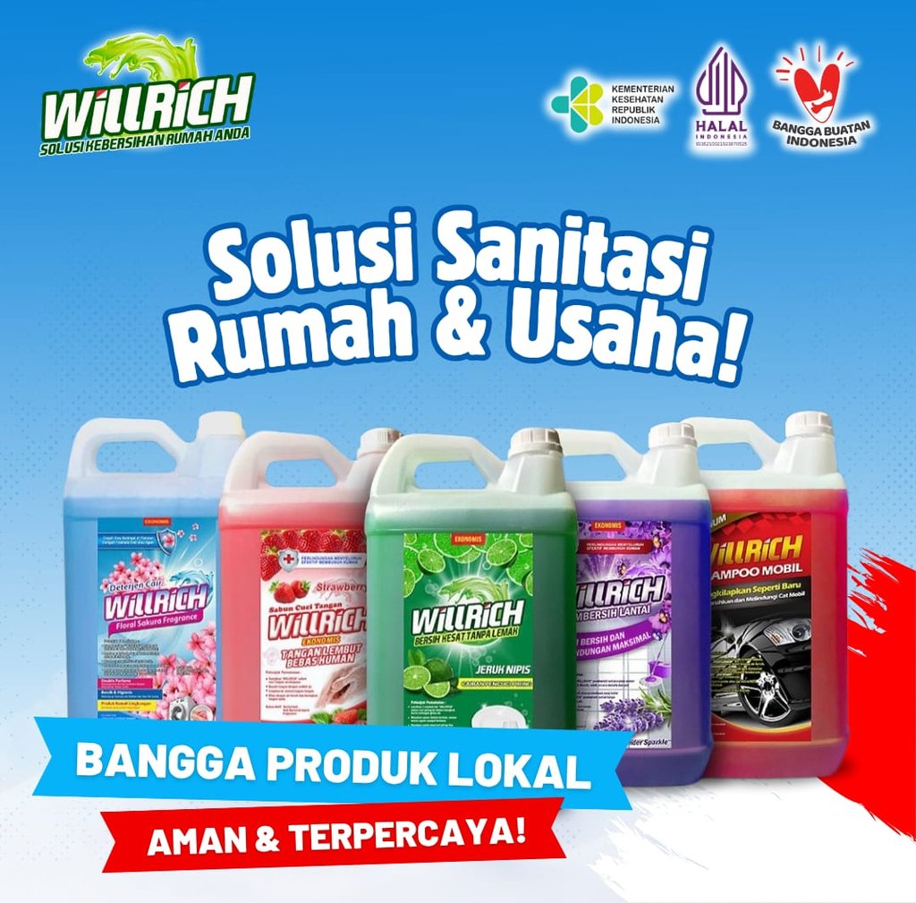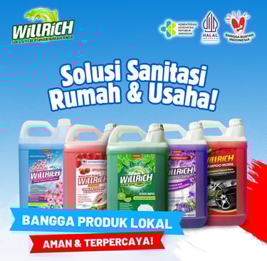 Willrich adalah brand cairan Pembersih untuk Mall yang telah memiliki Izin Edar Kemenkes RI, Sertifikasi Halal, serta formula aktif yang telah lolos uji laboratorium oleh tim ahli profesional.