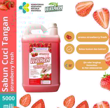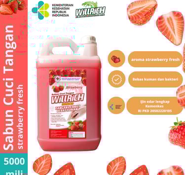 Dengan formulasi ini, Sabun Cuci Tangan Strawberry Willrich memberikan perlindungan yang efektif terhadap penyakit menular dan membantu menjaga kebersihan tangan secara menyeluruh.