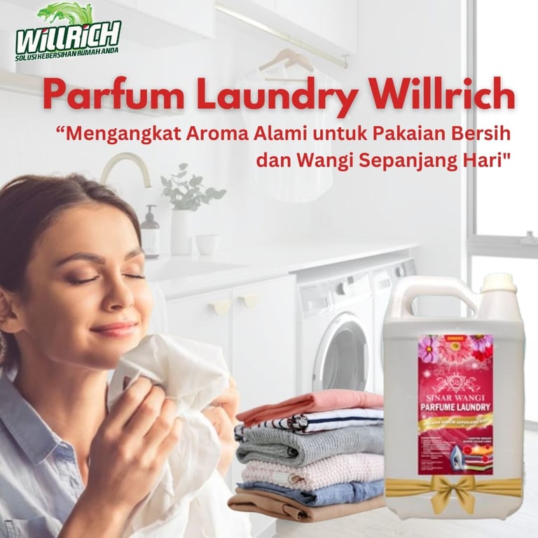 Parfum laundry Willrich adalah produk yang digunakan untuk memberikan aroma segar dan menyenangkan pada pakaian setelah dicuci.