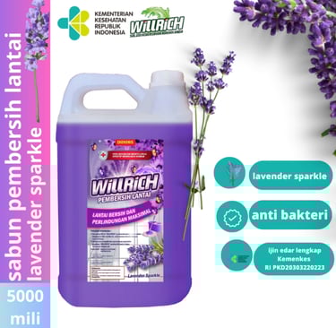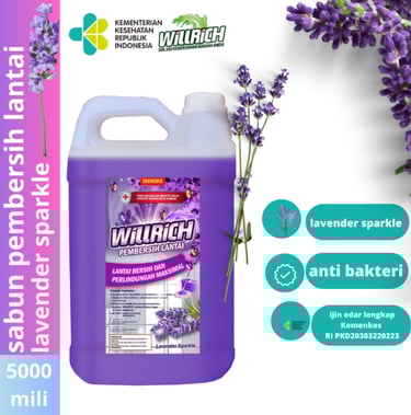 Pembersih Lantai Lavender Willrich adalah produk pembersih berbasis cair yang dirancang untuk membersihkan berbagai jenis lantai, termasuk keramik, vinyl, dan laminasi. Dikenal karena formula khususnya yang mengandung ekstrak lavender, produk ini tidak hanya membersihkan tetapi juga memberikan keharuman yang menyegarkan dan menenangkan di setiap sudut rumah.