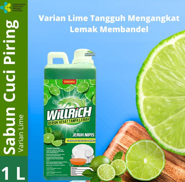 Sabun Cuci Piring Jeruk Nipis Willriich memanfaatkan kekuatan alami jeruk nipis untuk mengatasi noda dan minyak