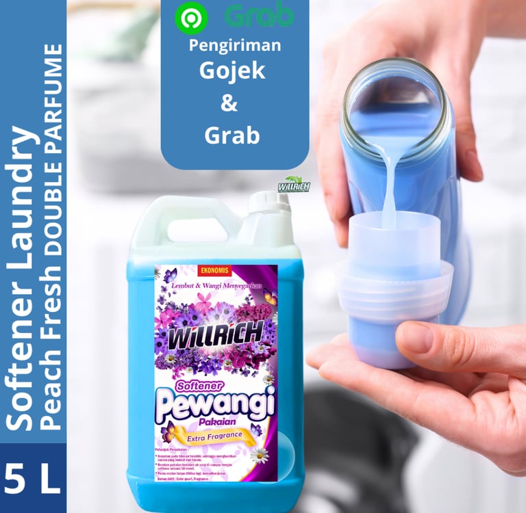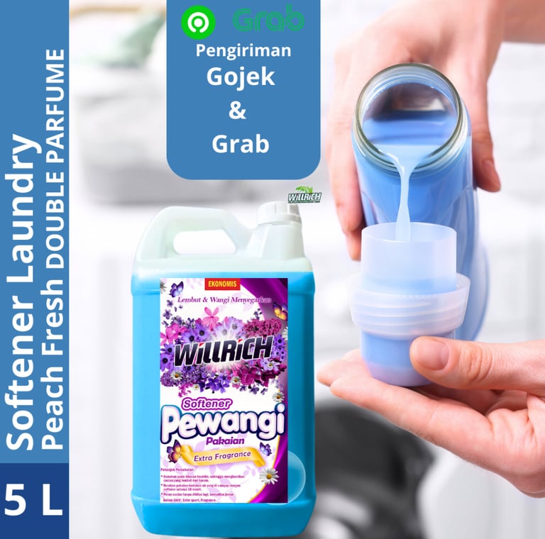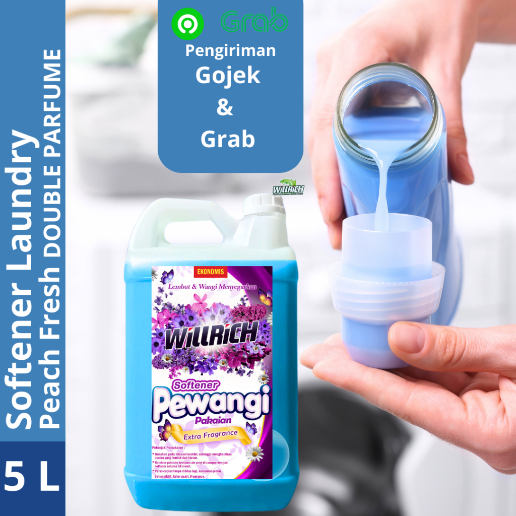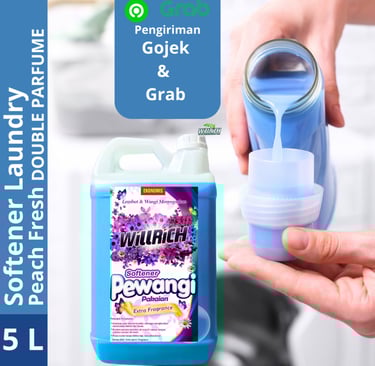 Willrich Softener Laundry 5 Liter Varian Sweet Purple Peach Fruity Pewangi Rendam Dengan Formula Anti Bau Membuat Pakaian Wangi Sepanjang Hari.Menggunakan Double Parfum ya.