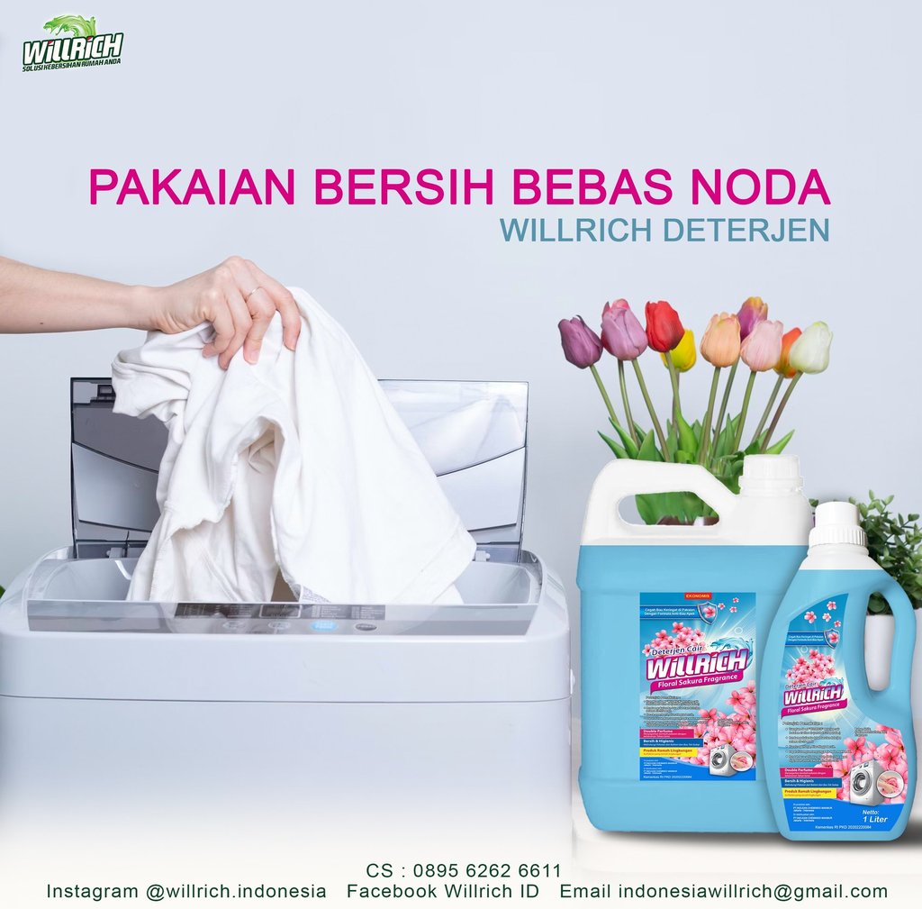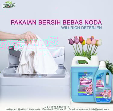 Deterjen Willrich mengandung formula khusus yang mampu menghilangkan noda, kotoran, dan bakteri dengan sempurna. Pakaian Anda akan tetap bersih dan segar setelah setiap pencucian.