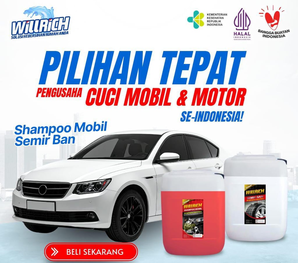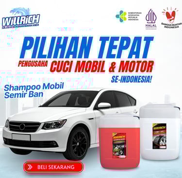 Produk Willrich Indonesia Sudah Memilik Izin Edar Resmi Kemenkes RI & Sertifikasi Halal. Kami Sudah Lebih Dari 8 Tahun Dipercaya Pengusaha Steam Cuci Motor/Mobil Di Seluruh Indonesia Dengan Formula Bahan Yang Khusus Dan Di Produksi Langsung Dari Pabriknya